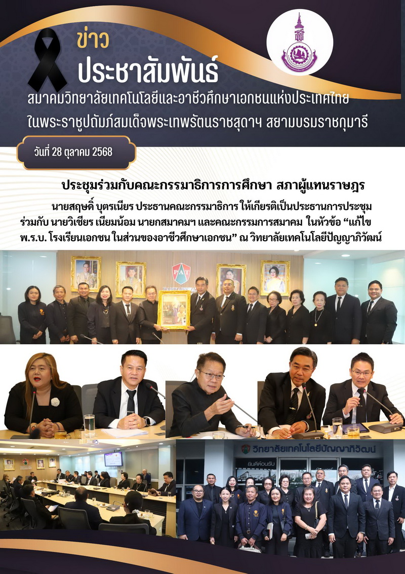 นายสฤษดิ์ บุตรเนียม ประธานคณะกรรมาธิการ ประชุม ร่วมกับ นายวิเชียร เนียมน้อม นายกสมาคมและคณะกรรมการสมาคม ในหัวข้อ แก้้ไข พ.ร.บ. โรงเรียนเอกชน วันที่ 28 ต.ค. 2568 ณ วท.ปัญญาภิวัฒน์ |