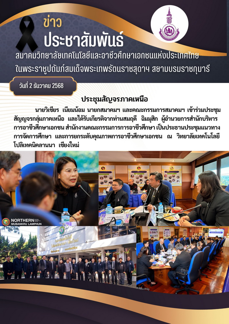 นายวิเชียร เนียมน้อม นายกสมาคมฯ และคณะกรรมการสมาคมฯ การประชุมสัญจร ครั้งที่ 4 วันที่ 2 ธ.ค. 2568 ณ วิทยาลัยเทคโนโลยีโปลิเทคนิคลานนา จ.เชียงใหม่