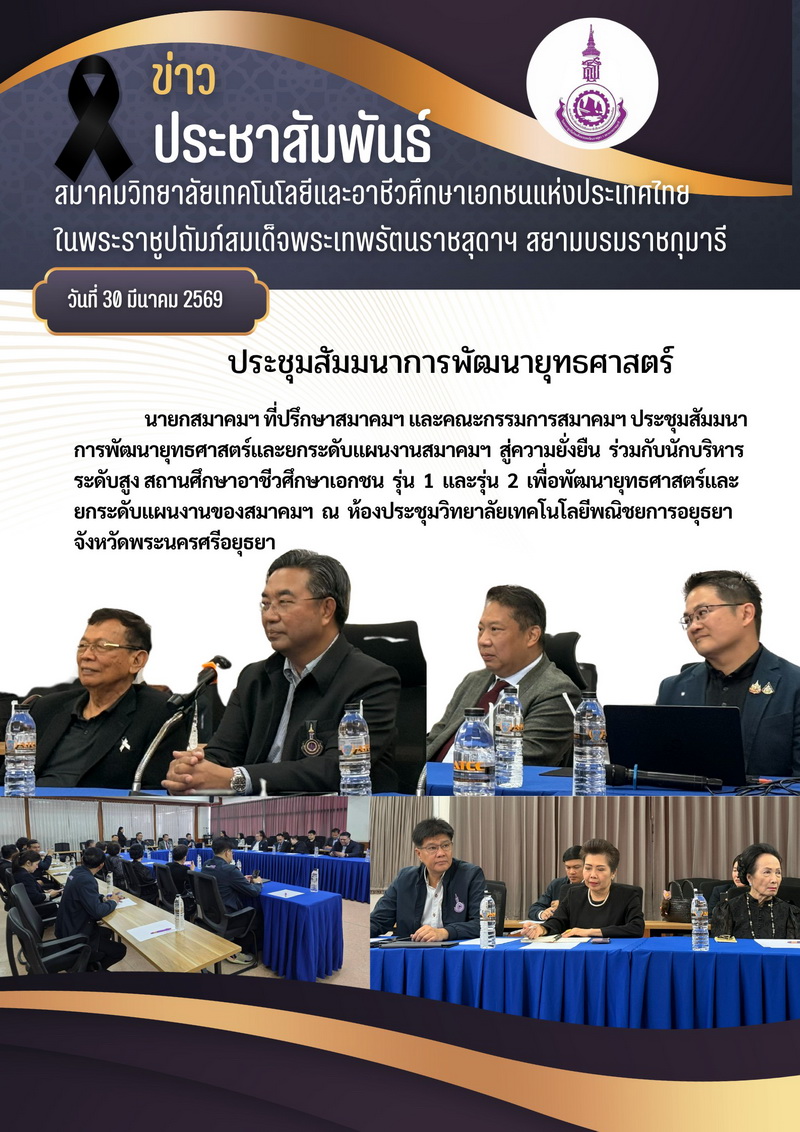 นายกสมาคมฯ ที่ปรึกษาสมาคม และคณะกรรมการสมาคมฯ ประชุมสัมมนาการพัฒนายุทธศาสตร์ วันที่ 30 มีนาคม 2569 ณ วิทยาลัยเทคโนโลยีพณิชยการอยุธยา จ.อยุธยา