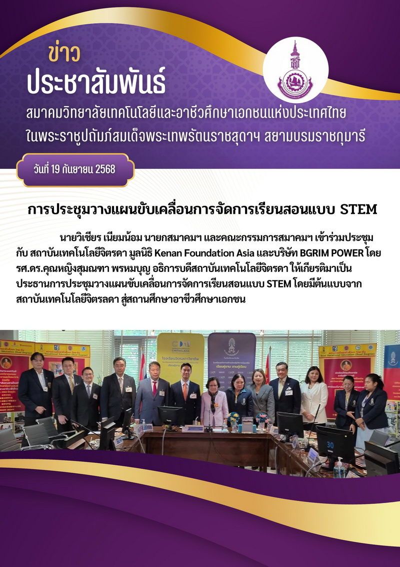 นายวิเชียร เนียมน้อม นายกสมาคมฯ และคณะกรรมการสมาคม เข้าร่วมประชุมวางแผนขับเคลื่อนการจัดการเรียนสอนแบบ STEM กับ สถาบันเทคโนโลยีจิตรดา วันที่ 19 ก.ย. 2568